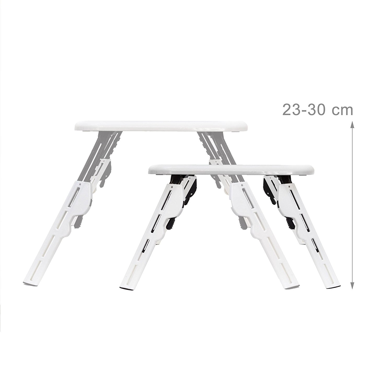 In hoogte verstelbaar van 23 – 30 cm, met kantelbare blad voor ergonomisch zitten