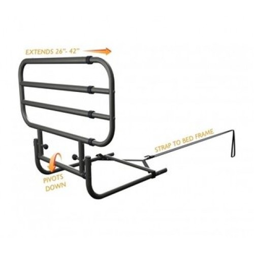 Dit verstelbare zijhek is op 2 manieren te gebruiken, als handgreep om makkelijk in en uit bed te stappen en als bedhek ter voorkoming van valpartijen.